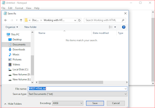 - Enter the name of the file, for example First, with the extension.htm or .html in the file name box.